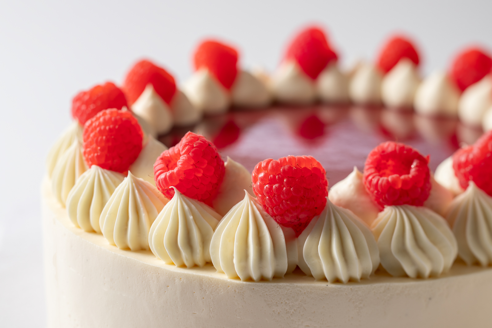 • Bezlepkový plát s mandlovou moukou, vklad I. bílá čokoláda, pyré malina, vklad II. malinové compote maliny, pyré. Vanilkový mousse žloutky, vanilka , mascarpone, šlehačka.